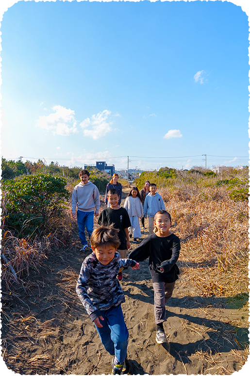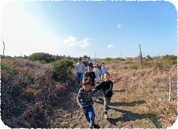 宿からテクテク歩いて5分、“サンライズビーチ”に到着! 子ども連れファミリーにぴったりの、のびのび遊べるワクワクスポットです。