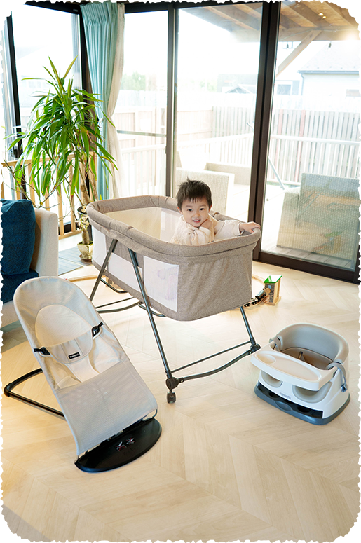 リビングの一角には、小さなお子さま向けのおもちゃが詰まった、キッズプレイゾーンもご用意。​雨の日でも安心、一日中“遊べるリビング”で、思いっきり楽しい時間をお過ごしください!