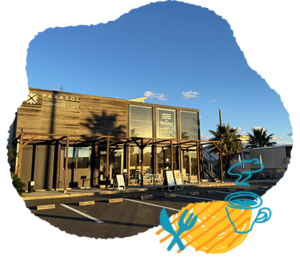 九十九里は田舎というイメージが強いですが、このお宿があるビーチ沿いの道だけは別。海好きがときめくオシャレエリアです。カラフルなサーフショップやカフェ、セレクト感のあるごはんスポットが並び、まるで湘南に来たようにテンション上がります!