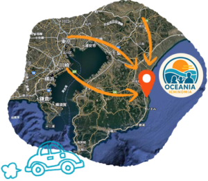 一宮は、都心や空港からの車アクセスもバッチリな、週末の旅に”ちょうどいい距離”の町。東京駅や羽田空港からは約1時間半成田空港からは約1時間で到着できます。アクアラインで東京湾を渡ったり、のどかな田んぼの風景を眺めたりしながら、お宿に着くころにはワクワク感も最高潮!